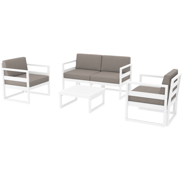 Siesta Mykonos Lounge Set - White with Brown Cushions