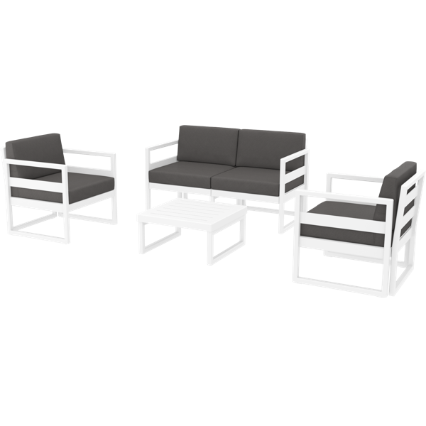 Siesta Mykonos Lounge Set - White with Dark Grey Cushions